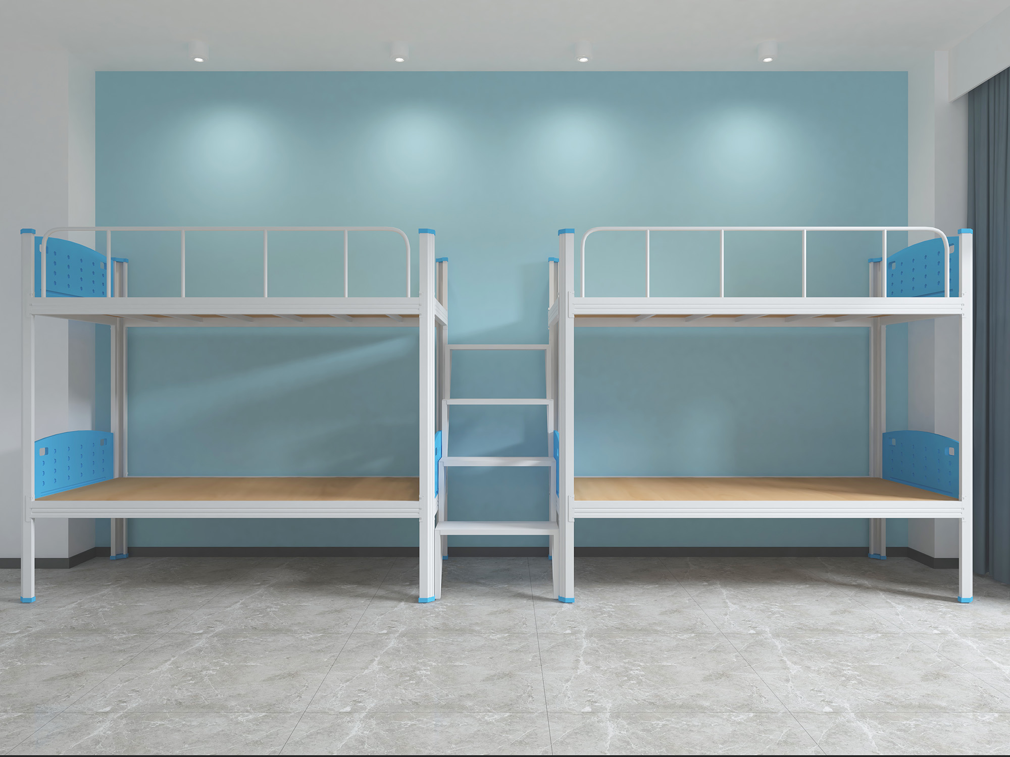 1.8、床支撐:采用尺寸為 20*30*0.9mm 優(yōu)質(zhì)方管制作,掛在長(zhǎng)橫梁里面,床板壓住后無(wú)法取出來(lái),避免取出當(dāng)做暴力工具。